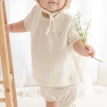 Bamboo Crinkle Gauze Creamy Flower Baby ¾ Sleeve Blouse